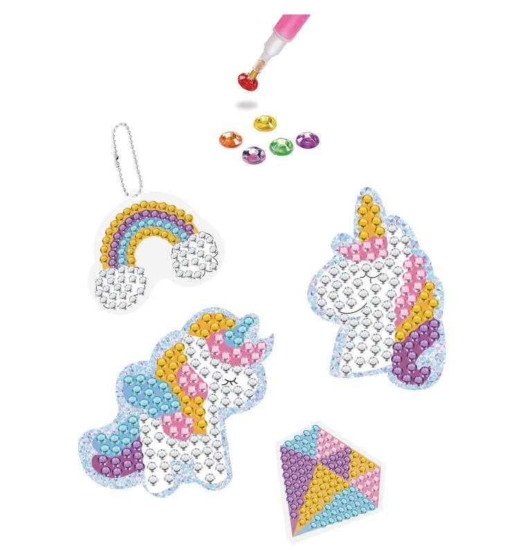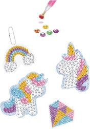 S tem kompletom se vsak mali ustvarjalec v hipu spremeni v draguljarja. Dovolj je slediti predlogi, lepiti bleščeče kamenčke in v trenutku nastanejo izvirni obeski ter nalepke s fantazijskimi motivi. Končane izdelke lahko pripnete na nahrbtnik, peresnico ali podarite prijateljem.