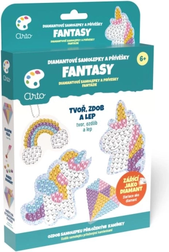 Odkrijte čar bleščeče ustvarjalnosti s kreativnim kompletom Arto diamantni nalepki in obeski. Otroci zlahka ustvarijo bleščeče nalepke in obeske s pomočjo barvnih »diamantov«, ki se preprosto lepijo na predtiskane predloge. Odlična izbira za razvoj fine motorike, potrpežljivosti in občutka za podrobnosti.