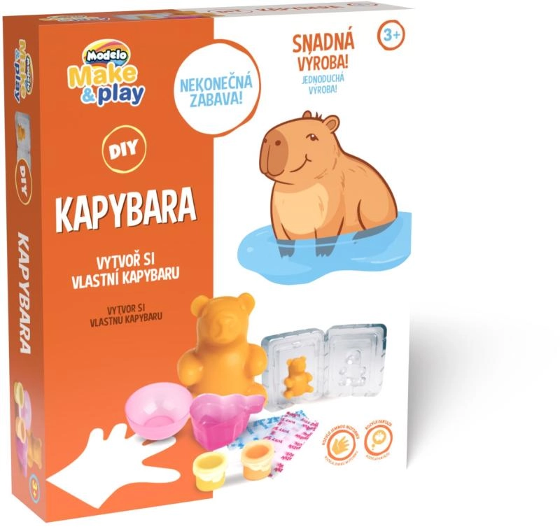 Ustvarite prikupno kapibaro s pomočjo silikonskega kalupa in posebne fleksibilne mase, ki jo zmešate sami. Po utrjevanju je figurica mehka, upogljiva in trpežna, idealna kot antistresna stiskalna igrača. Komplet je zasnovan tako, da je postopek enostaven in čist ter ga zmore vsak.
