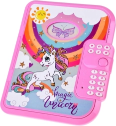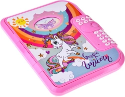 Ta rožnat dnevnik z čarobnim motivom samoroga je idealen za otroke, ki želijo svoje misli in zaklade hraniti na varnem. Odpira se po vnosu 4-mestne PIN kode, zato zapiski ostanejo le za pravega lastnika. Zahvaljujoč angleškemu govornemu vodiču je upravljanje intuitivno in igrivo.