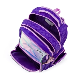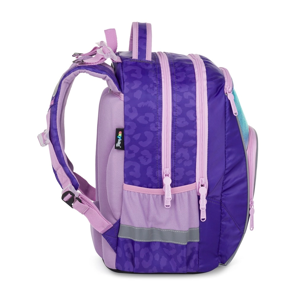 Stilski in funkcionalni nahrbtnik OXY GO Fashion navduši z dizajnom in praktičnostjo. Ponuja dva prostorna glavna predala za učbenike in zvezke, sprednji žep za drobnarije ter par stranskih žepov (odprti za steklenico in zapiralni z zadrgo). Obložen, zračen hrbtni panel ter ergonomske, nastavljive naramnice zagotavljajo udobno nošenje skozi ves šolski dan.
