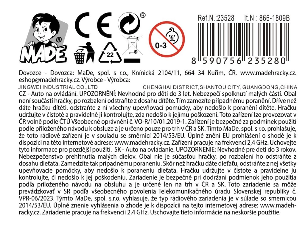 Zabaven in enostaven za upravljanje RC avto 25 cm za otroke od 3 let prinaša ure igre in dirkanja. Lahka plastika konstrukcija, napajanje z AA baterijami/pack in privlačen videz naredijo iz tega modela odlično darilo v okenskem škatlastem pakiranju za male voznike.