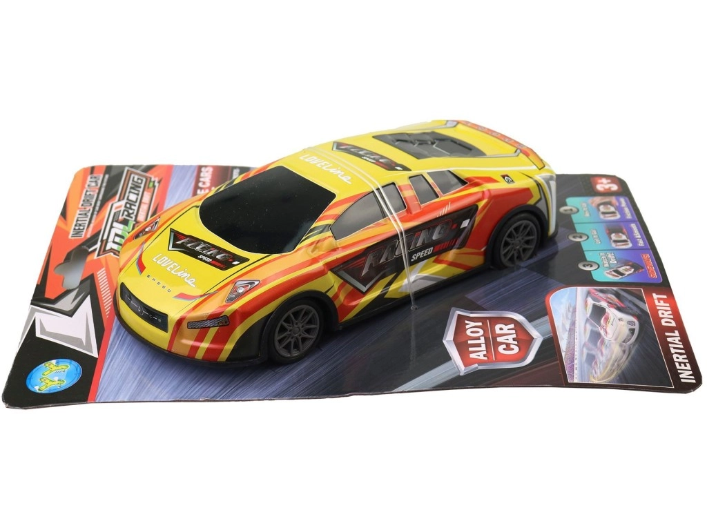 Uživajte v akcijskih dirkah s kovinskim avtomobilčkom, ki ne potrebuje baterij. Zahvaljujoč inercialnemu/frikcijskemu pogonu je dovolj, da avtomobilček potisnete in zapelje naprej. Robusna konstrukcija iz kovine in odporne plastike prenese vsakodnevno igro ter nudi realističen videz in gladko gibanje koles.