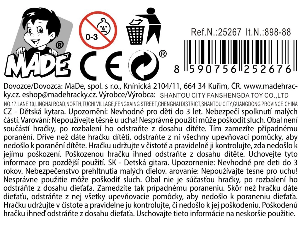 Odkrijte veselje do glasbe s to lahko in vzdržljivo otroško kitaro, idealno za prve korake malih in velikih glasbenikov. Zahvaljujoč kompaktnim meram 57,5 × 21,5 × 7,3 cm lepo sede v roko, barvna izvedba spodbuja ustvarjalnost, vzdržljiv plastičen material pa zagotavlja dolgo življenjsko dobo. Dobavljena v odprti embalaži, ne potrebuje baterij.