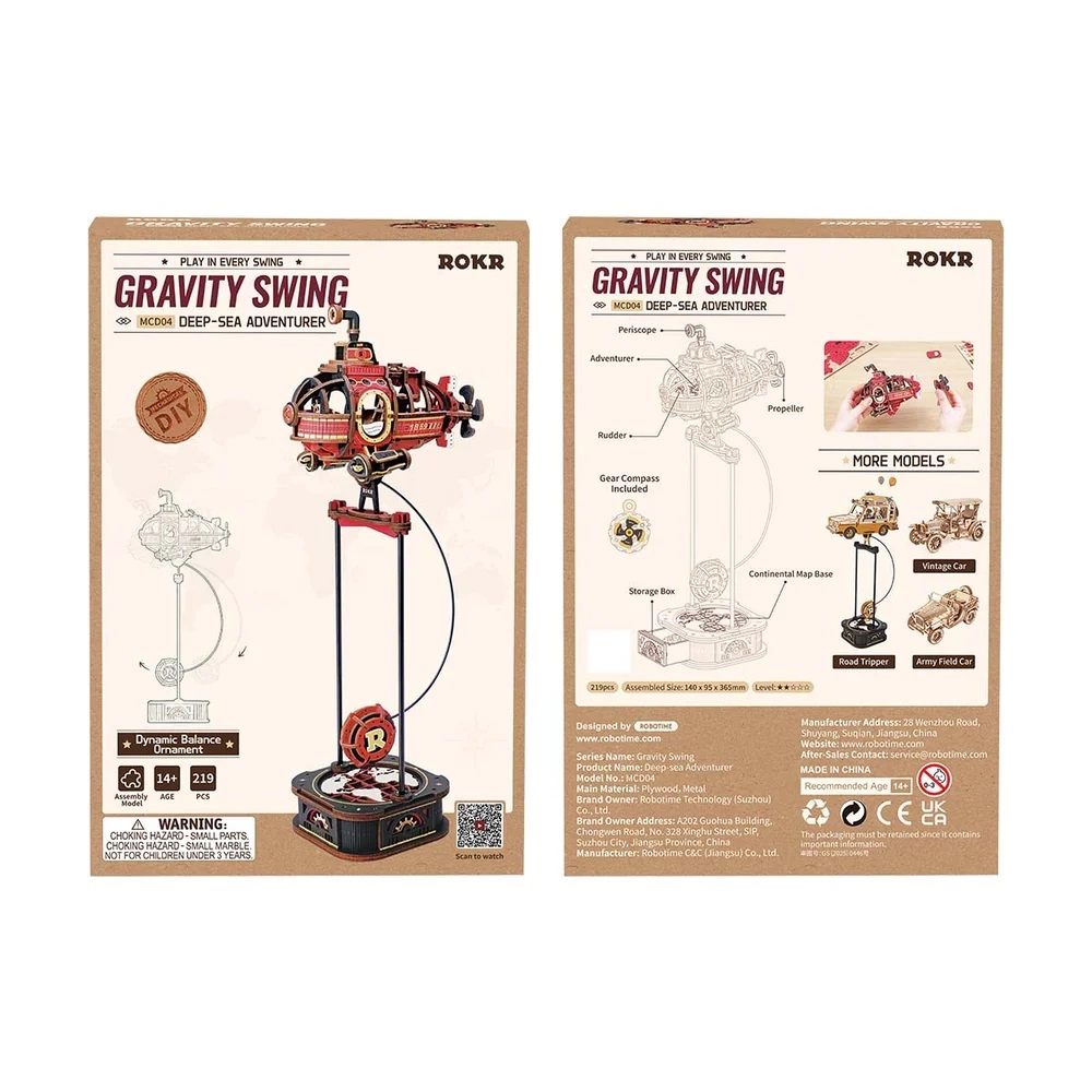 Podajte se na namišljeno plovbo pod gladino s podmornico, ki oživi zahvaljujoč uteženemu nihalu – nežno jo potisnite in začne se ritmično zibati. Model iz serije Gravity Swing na privlačen način prikazuje principe gravitacije, ravnotežja in pretvorbe energije, obenem pa zabava in izobražuje.