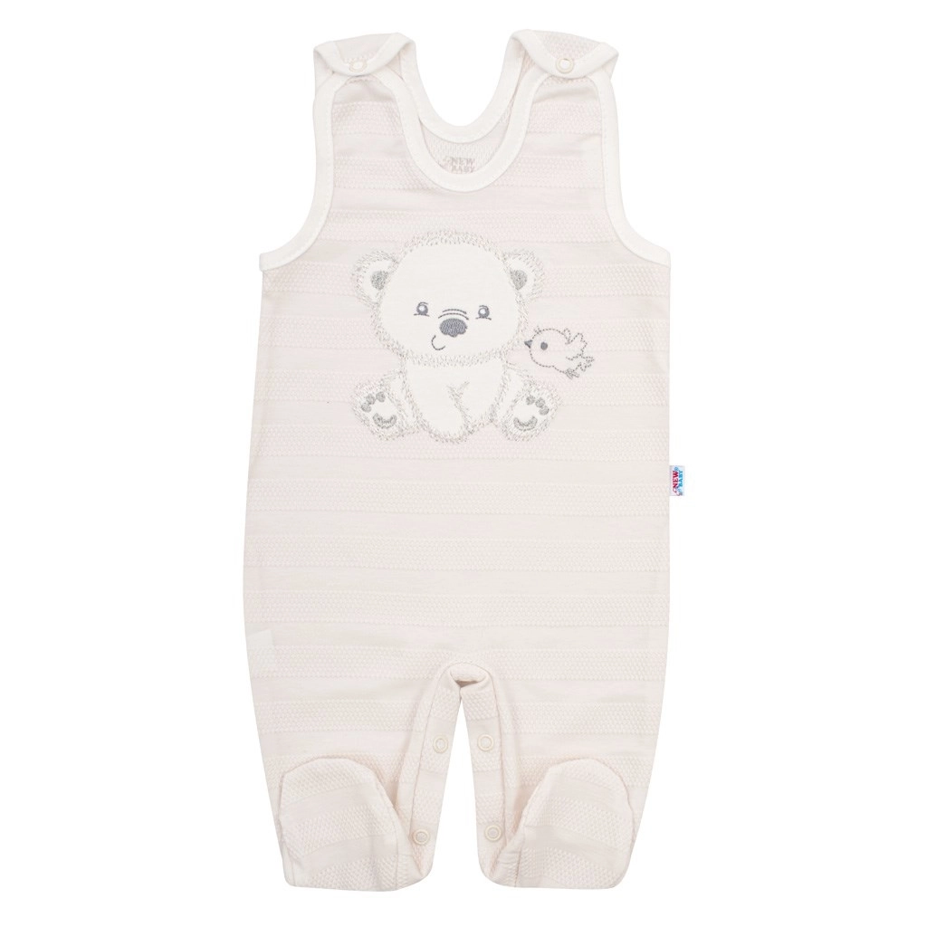 Ta eleganten novorojenčki komplet New Baby Sweet Bear je zasnovan za največje udobje in varnost dojenčka. Nežen, zračen 100% bombaž je prijazen do občutljive kože in odlično odvaja vlago. Nežno bež izvedbo z diskretnimi teksturami in ljubko vezenino medvedka s ptičkom lahko nosijo deklice in dečki.