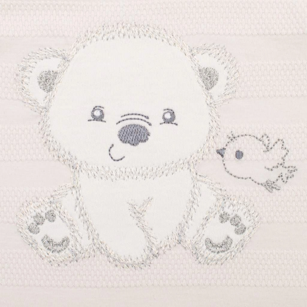 - Unisex dizajn: nežna bež barva z ljubko vezenino medvedka in ptička