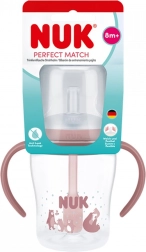Učna steklenička NUK Perfect Match s slamico je zasnovana za otroke od približno 8 mesecev in spodbuja samostojno pitje. Mehka in prožna silikonska slamica je nežna do otroških ust in dlesni, medtem ko široka opora za ustnice posnema naraven način pitja in olajša prehod od cuclja k lončku.