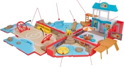 Kompaktno ohišje se razpre v bogato sceno s promenado, plažo in bazenčkom. Idealno za igro doma, pri prijateljih ali na poti.