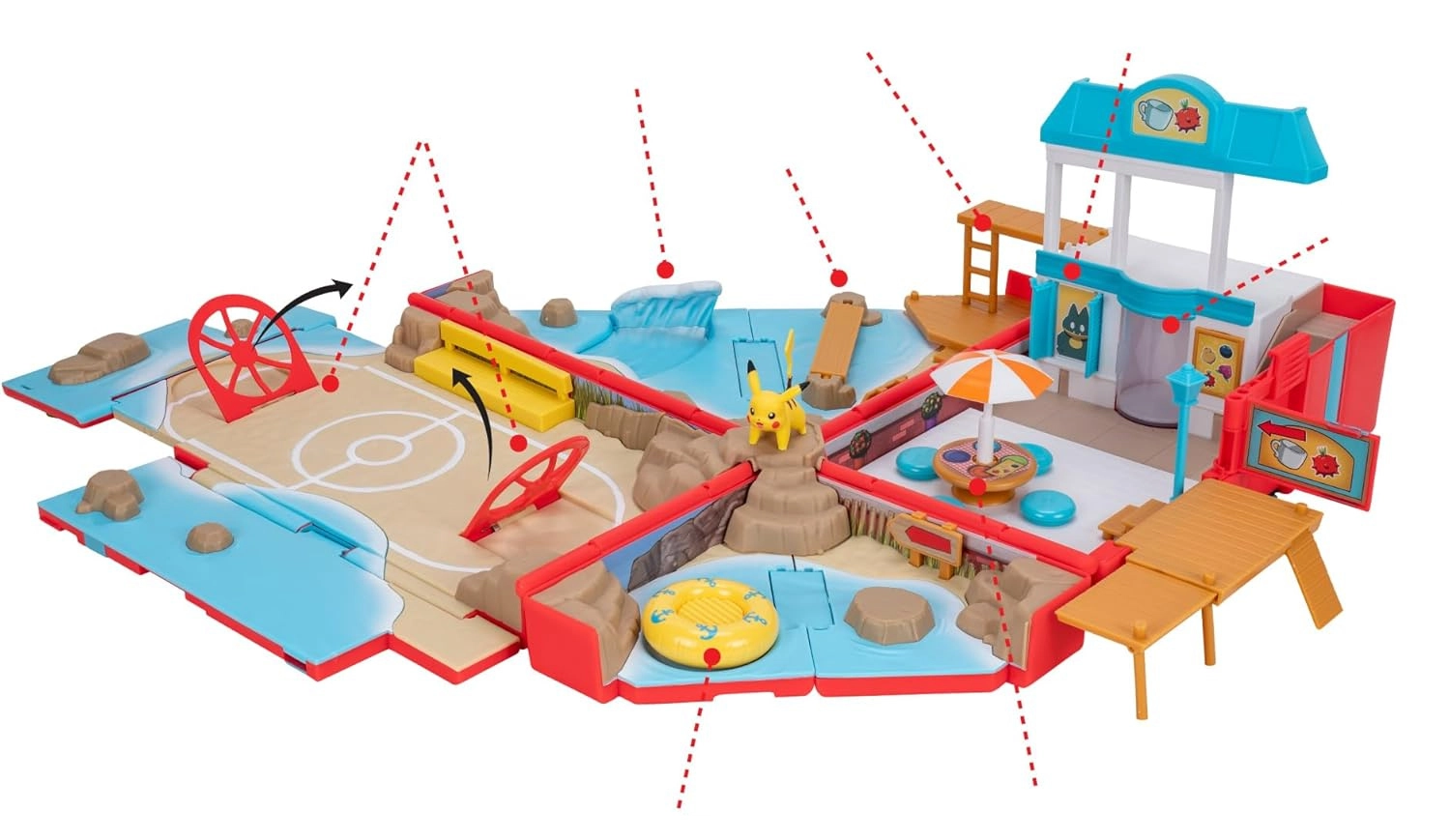 Uradno licenciran izdelek podjetja Jazwares navduši z dovršeno izdelavo in združljivostjo z drugimi bojnimi figurami Pokémon. Otroci lahko ustvarjajo lastne zgodbe s priljubljenim junakom PIKACHU in odkrivajo nove prizore na plaži.