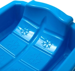 Lahke in vzdržljive plastične sani Baby Mix Karol v modri barvi za otroke od 3 do 7 let zagotavljajo zimsko zabavo in varnost. Zahvaljujoč integriranim zavoram imate boljši nadzor smeri in varno ustavljanje na klancu. Sani so iz na mraz odporne plastike do -20 °C, imajo čvrsto vlečno vrv z ročajem in izpolnjujejo certifikate CE, EN 71-1/2/3.