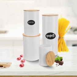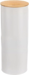Elegantna kuhinjska posoda Whiteline s prostornino 2,65 l združuje mat belo kovino in naravni bambusov pokrov s silikonskim tesnilom za dolgotrajno svežino. Zaradi višine 28,5 cm je idealna za špagete, pa tudi za kavo, čaj, suhe gobe ali oreške. Minimalističen dizajn se poda vsaki sodobni kuhinji.