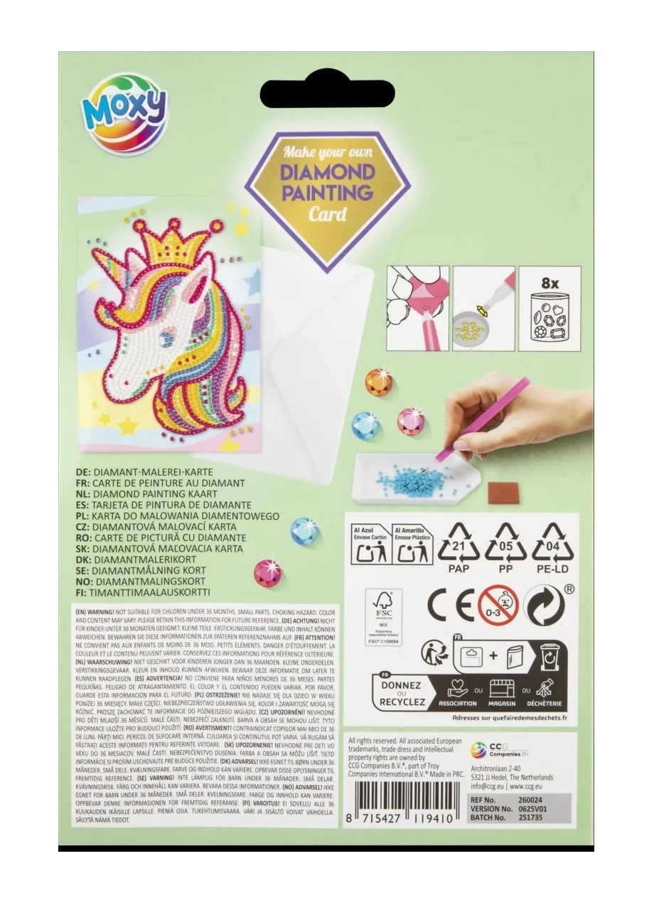 Odkrijte veselje do ustvarjanja s tem ustvarjalnim kompletom za diamantno slikanje v dimenzijah 18 × 13 cm. Po bleščeče kamenčke lepite po številkah na predlogi in ustvarite žarečo sliko, ki bo razveselila vas in vaše bližnje. V paketu najdete vse potrebno – od aplikacijskega pisala do lepilnega kvadratka in pladnja, ter darilne kuverte za končano sliko.