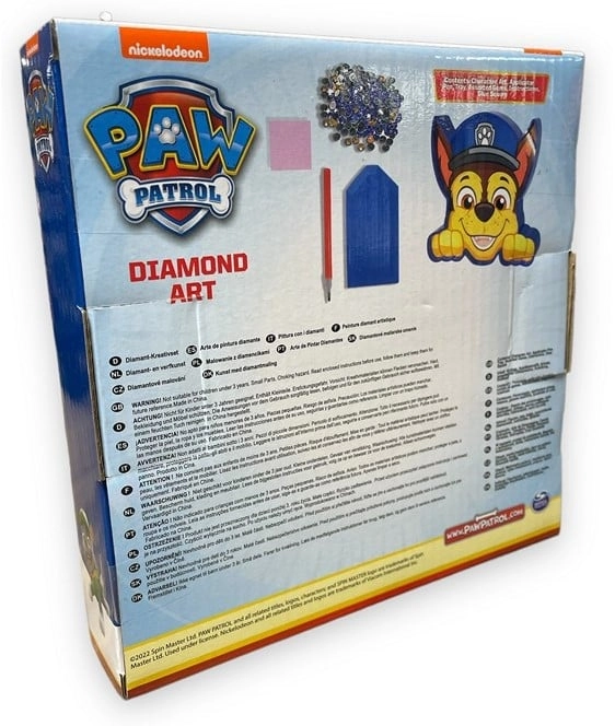 Odkrijte zabaven ustvarjalni komplet za otroke in odrasle: diamantno slikanje z motivom kužka Chasa iz risanke Tačke na patrulji. S pomočjo bleščečih kamenčkov ustvarite čudovito sliko velikosti 18 × 18 cm. Komplet vsebuje vse, kar potrebujete za lahek začetek – idealno darilo in odlična aktivnost za razvoj potrpežljivosti in fine motorike.