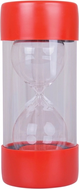 Rdeči pesek v prosojnem ohišju omogoča otrokom in odraslim, da zlahka spremljajo, koliko časa ostaja od 30‑sekundnega intervala.