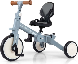 Enostavno preklapljajte med 5 načini: tricikel s pedali kot podstavki in vodilno palico, trikolni poganjalec, tricikel s pedali na sprednjem kolesu, poganjalec z vodilno palico in klasični poganjalec. Kompaktna zložljiva konstrukcija je idealna za potovanja in majhna stanovanja, pedale pa lahko shranite v nosilec na krmilnem stolpu ali jih uporabite kot podstavke pod okvirjem.