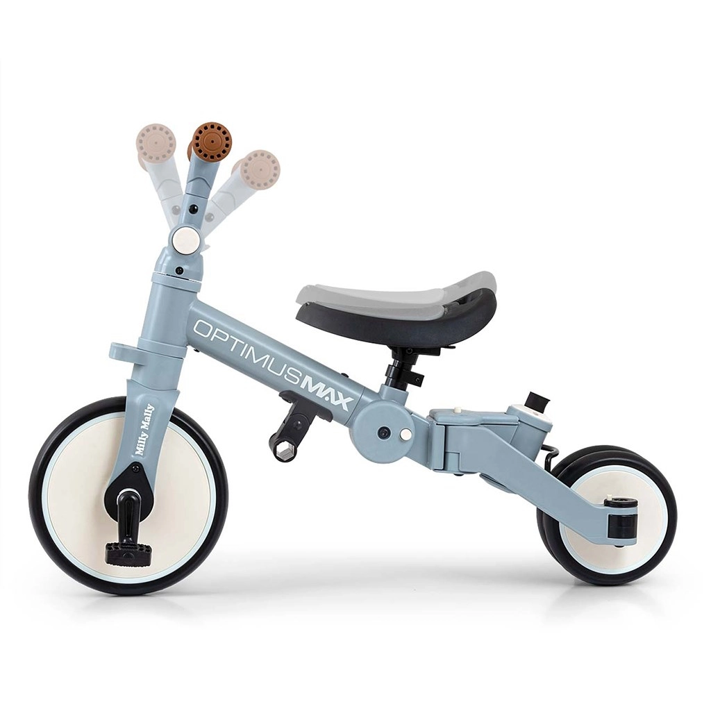 KINDERKRAFT OPTIMUS MAX je premišljena rešitev za prve vožnje – od podpore staršev do samostojne vožnje. Robustni jekleni okvir, penevne pnevmatike in profiliran sedež s 3-točkovnimi odsevnimi pasovi zagotavljajo udobje in varnost. Omejevalnik zasuka krmila preprečuje preobrat in prevrnitev, medtem ko preklopna zadnja kolesca olajšajo spremembo načina.