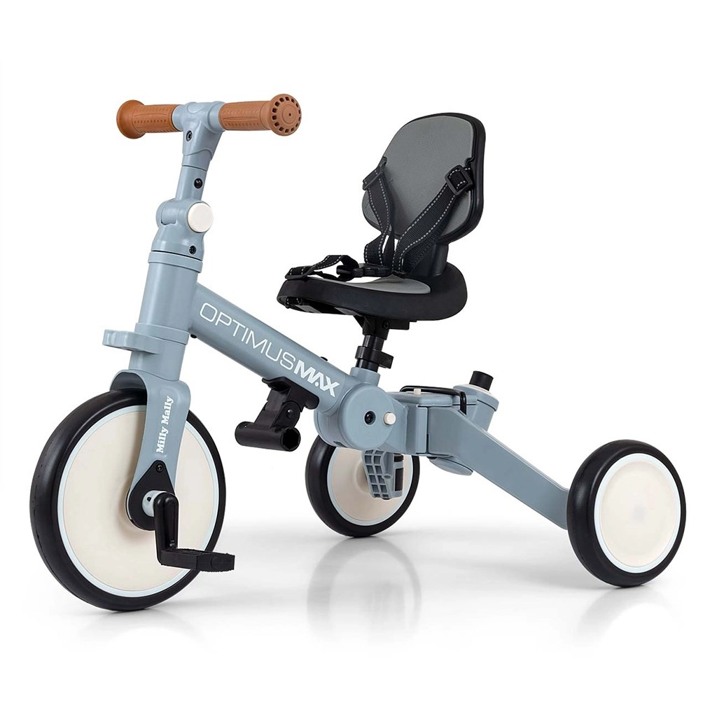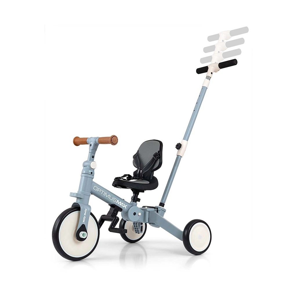 Univerzalni otroški tricikel in poganjalec 5v1 KINDERKRAFT OPTIMUS MAX raste z otrokom od 12 mesecev. Ponuja stabilno trikotno konstrukcijo, vodilno palico za starše s 4 stopnjami višine, nastavljiv sedež in penevna kolesa za udobno vožnjo. Zahvaljujoč hitri preusmeritvi med načini pomaga razvijati motoriko, ravnotežje in prve korake s pedali – varno in zabavno.