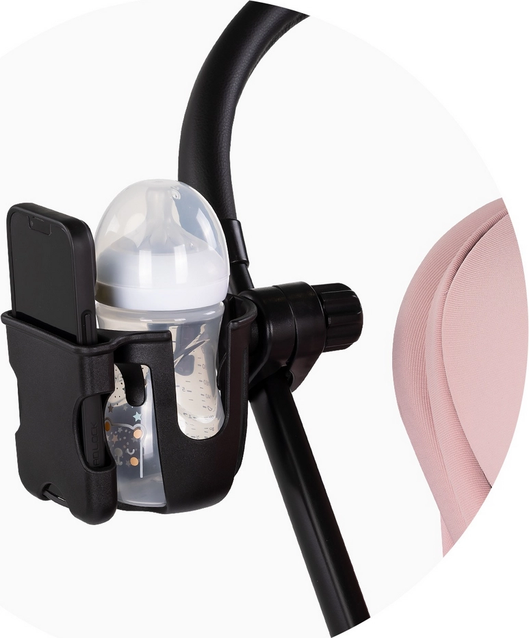 Praktičen dodatek za vozičke, kolesa in skiroje, ki združuje nosilec za pijačo in telefon v enem. Zahvaljujoč 360° vrtljivemu mehanizmu, močnemu protidrsnemu oprijemu in montaži brez orodja boste imeli vse pri roki varno in stabilno tudi na neravnem terenu.