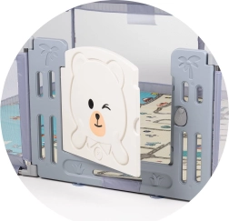 Trdna plastična vratca z ljubkim motivom in zanesljivim zaklepom omogočajo lahek vstop in izstop ter hkrati ohranjajo otroka na varnem.