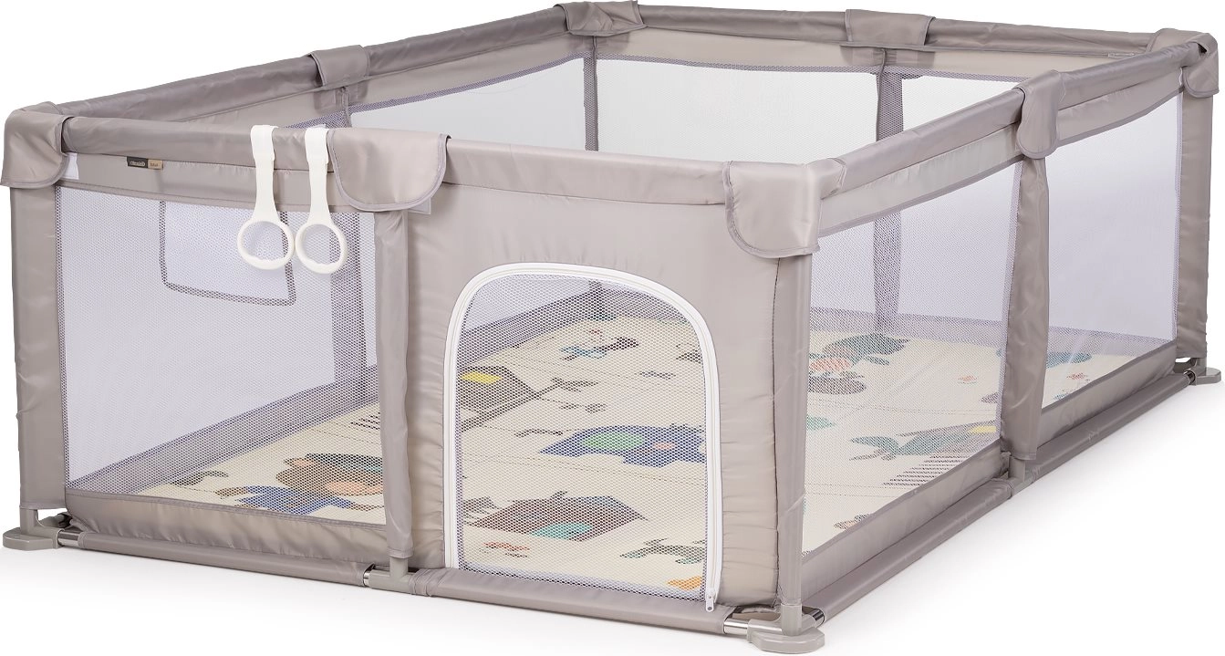 Ograja CHIPOLINO Lotus Beige je idealna izbira za starše, ki iščejo varno in udobno mesto za otroke od najzgodnejše starosti. Prostorna osnova nudi dovolj prostora za plazenje in igro, mrežaste stene omogočajo popoln pregled nad dogajanjem v notranjosti ter zagotavljajo odlično kroženje zraka. Vratca z zadrgo spodbujajo otrokovo samostojnost in olajšajo dostop.