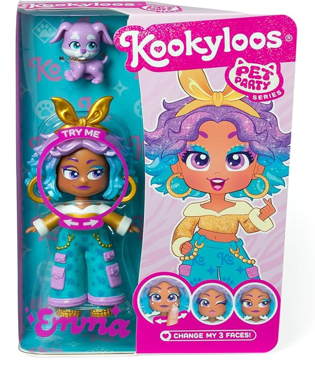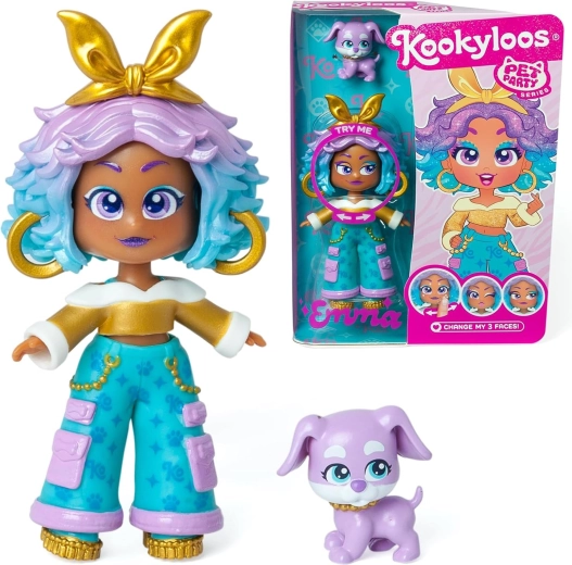Odkrijte svet KookyLoos z zbirateljsko figurico Emma – Pet Party. Figurica ima značilen outfit, moden pričesko in dodatke, ki se ujemajo s tematsko serijo. Z zasukom glavice Emma dobi tri različne mimike, zato lahko izražate čustva in ustvarjate lastne zgodbe.
