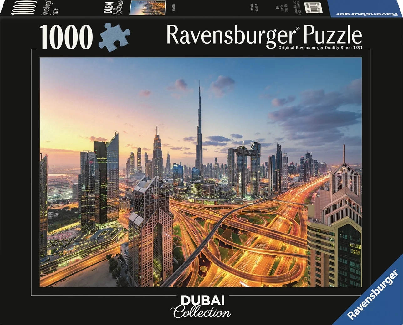 Odkrijte čar sodobne metropole s sestavljanko RAVENSBURGER. Ta kakovostna sestavljanka z motivom Dubaja ponuja 1000 koščkov, natančne zaskoke in nežno mat tisk za udobno sestavljanje. Idealna za sprostitev, razvoj potrpežljivosti in kot stilna dekoracija po dokončanju.