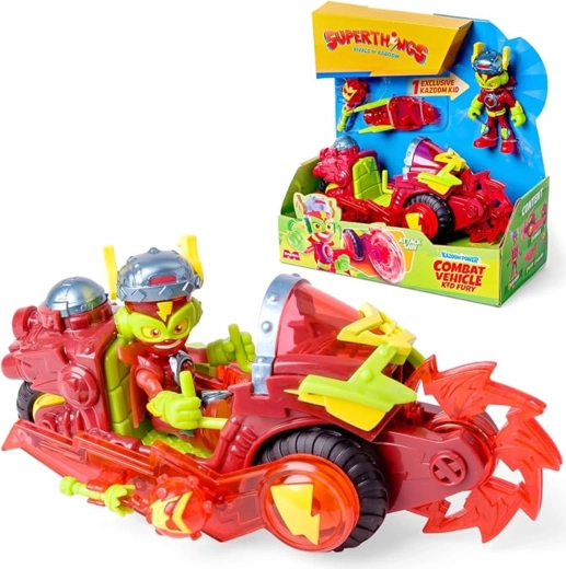 Priljubljeni svet SUPERTHINGS oživi v dinamičnem kompletu, navdihnjenem po seriji »Kazoom Power«. Junak se poda v akcijo z vzdržljivim vozilom, pripravljen na poseben napad in zaščito Kaboom Cityja. Odprt vhod v vozilo in vrteči se bojni sveder prinašata res intenzivno igralno izkušnjo.