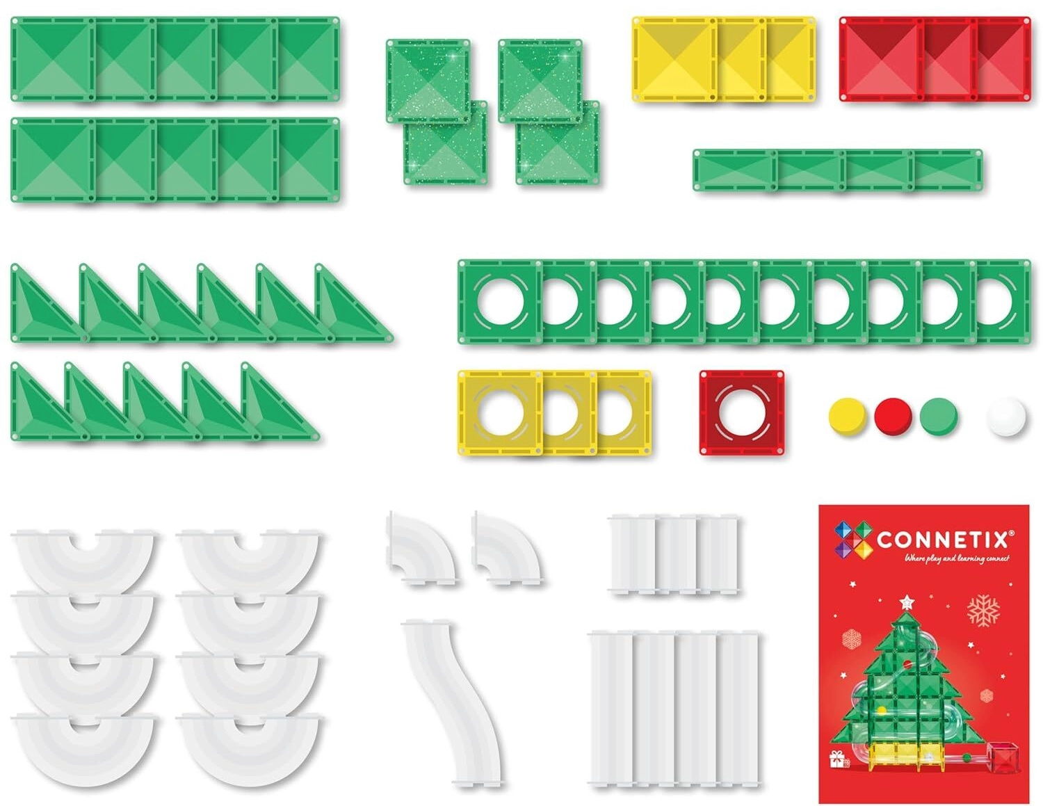 Omejeni božični set CONNETIX Christmas Tree Special Edition Ball Run Pack v živahnih, bleščečih barvah je idealen za kreativno gradnjo 2D in 3D modelov ter hitrih stez za kroglice. Zahvaljujoč močnim neodimskim magnetom se deli zanesljivo privlačijo z vseh strani in konstrukcije držijo obliko. Značilni »klik« ob spajanju otrokom prinaša takojšnje zadovoljstvo in jih spodbuja k nadaljnjim eksperimentom.