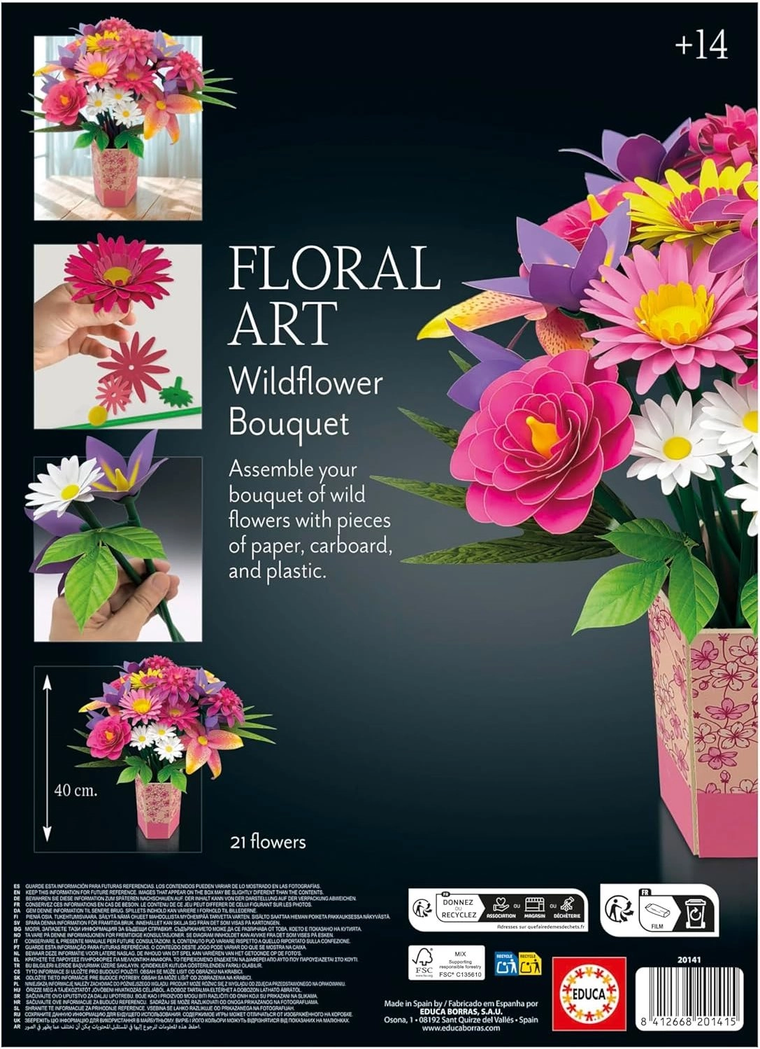 Odkrijte edinstveno 3D sestavljanko EDUCA Floral Art – poljsko cvetje, ki združuje kreativno ustvarjanje z elegantnim dizajnom. Sestavite lastno dekorativno šopek brez lepila in škarij iz okolju prijaznih materialov – idealno za sprostitev, ročna dela ter kot stilna domača dekoracija ali izvirno darilo.