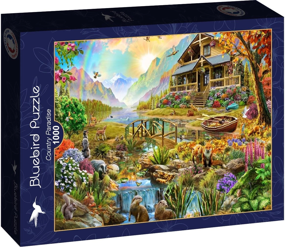 Uživajte v urah zabave s sestavljanko BLUEBIRD Zemeljski raj s 1000 kosi. Zahvaljujoč natančnim izrezom se deli odlično prilegajo, končna slika pa zažari na vsaki steni. Velikost končane sestavljanke je približno 69 × 47,8 cm, kar je idealen format za uokvirjanje.