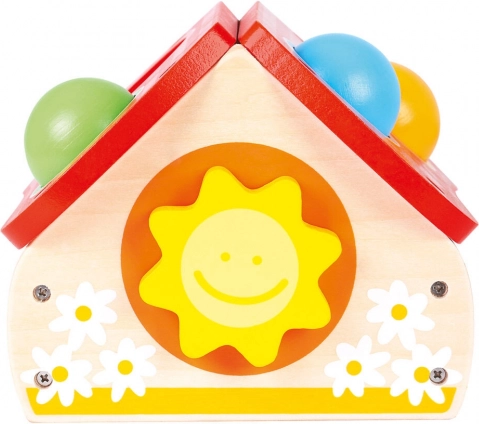 Zaradi čvrste izdelave iz vezane plošče in masivnega lesa je igrača stabilna in varna. Žogice lahko uporabite tudi samostojno v drugih igrah, hišica pa je primerna za prosto igro s figuricami. Idealno za otroško sobo in vrtce.