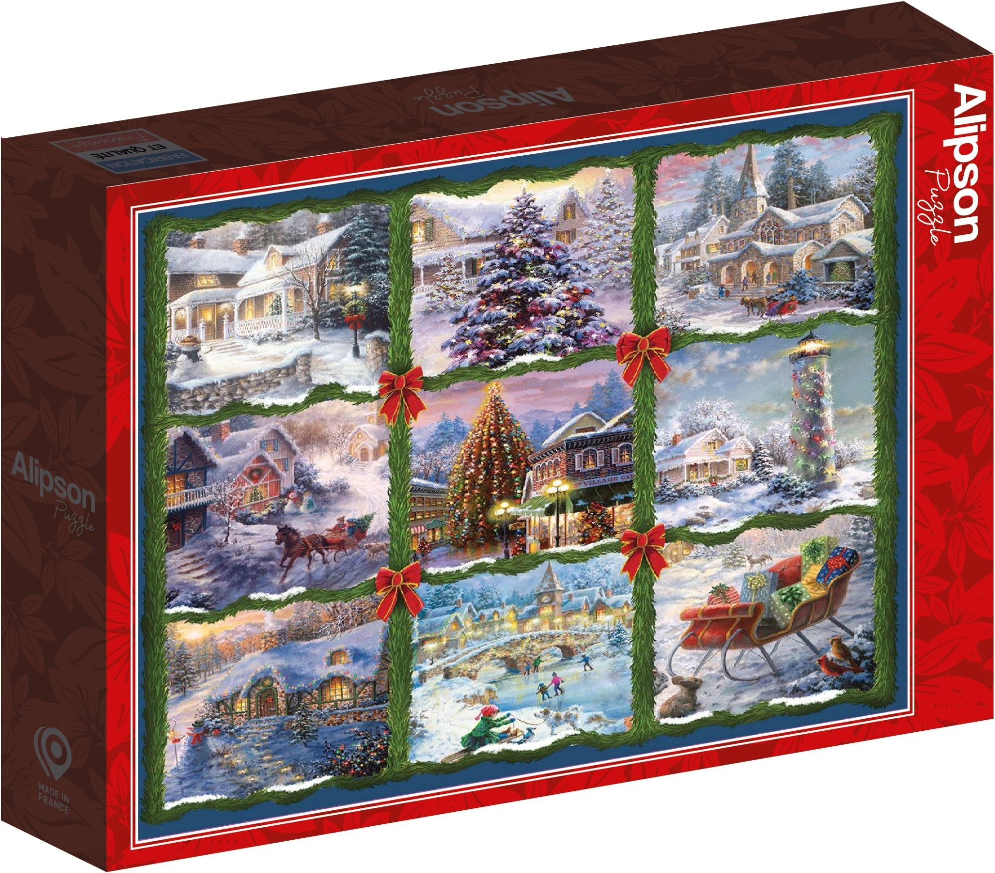 Odkrijte čar božiča pri sestavljanju kvadratnih puzzlov z motivom devetih tematskih delov, ki skupaj tvorijo harmonično praznično podobo. S 1000 skrbno izrezanimi koščki boste uživali v urah zbrane zabave, sprostitve in prijetnega razpoloženja.