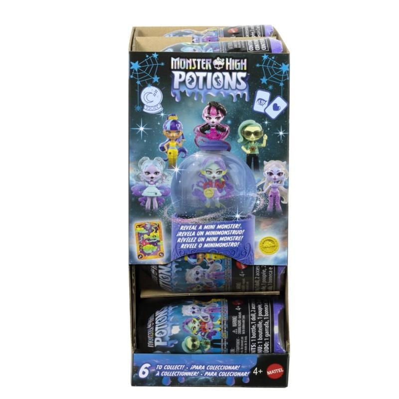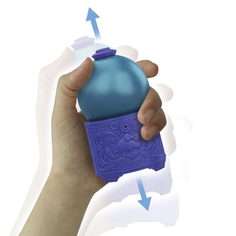 Ta igrivi set prinaša edinstveno doživetje odpiranja: napoj pripravite v treh korakih – nalijte vodo v kroglo, pretresite in opazujte, kako nastane magični napoj. Nato kroglo obrnite in pojavi se majhna punčka iz vašega najljubšega sveta MONSTER HIGH. Zaradi kompaktne velikosti je idealna za igro doma in na poti.