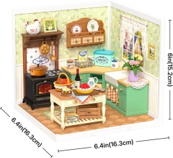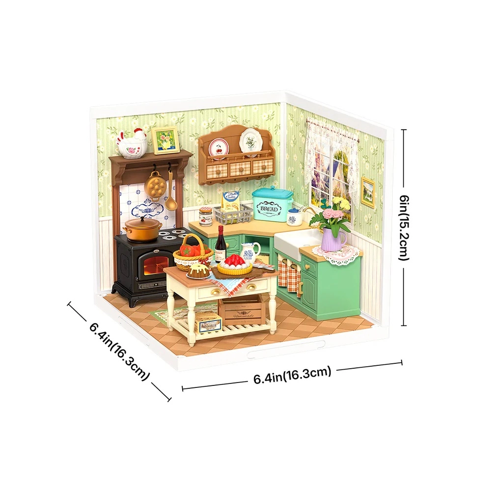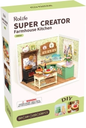 Odkrijte svet detajlov in topline v miniaturi. Ta natančen DIY komplet vas popelje skozi gradnjo kmečke kuhinje s štedilnikom, koritom, otokom in množico realističnih dodatkov. Zahvaljujoč LED osvetlitvi izstopa vsak kos pohištva in dekoracije, končni model pa postane izrazit okras police ali delovnega kotička.