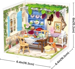 Odkrijte čar miniatur z dovršeno verando, polno pohištva, dodatkov in rastlin. Prosojni elementi in LED osvetlitev ustvarijo edinstveno atmosfero, zaradi katere bo vaš model izstopal podnevi in ponoči. Sestavljanje je intuitivno – natančno izrezani deli se gladko zaskočijo brez potrebe po lepilu ali posebnem orodju.
