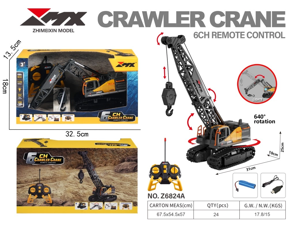 Odkrijte dovršen RC grabilni žerjav v merilu 1:24, ki zvesto posnema pravi gosenični gradbeni stroj. Ponuja gladko upravljanje vožnje naprej/nazaj, obračanje levo/desno ter podrobno delo z roko – vključno z upogibom členka in dvigovanjem kavlja. Slogovno rumeno‑črno izvedbo, svetlobne učinke in robustne gosenice poudarjajo realističen videz in funkcije.