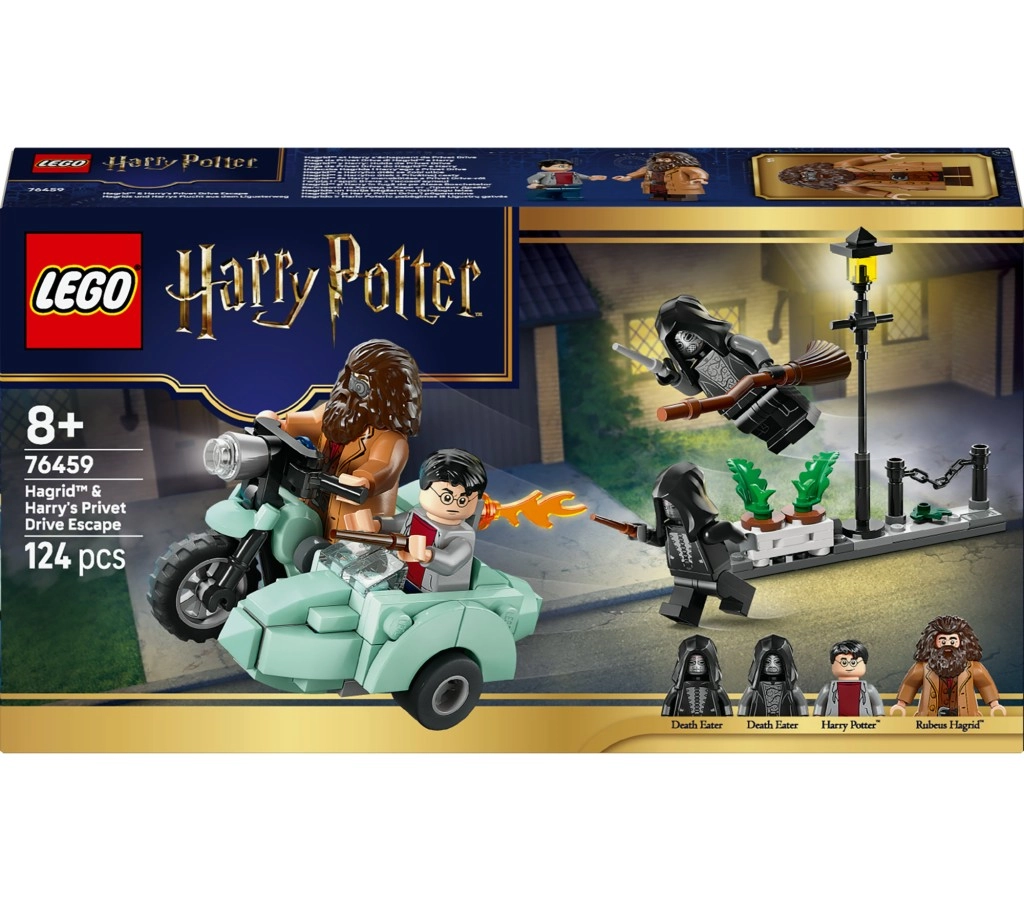 Ta komplet zvesto ujame dramatičen pobeg pred Jedci smrti: Hagrid drži krmilo svojega svetlo zelenega motorja, medtem ko Harry varno sedi v prostornem stranskem vozíku. Avtentičen videz dopolnjujejo prosojna sprednja luč, robustne pnevmatike in temačno obarvano mini prizorišče Ulice magnolij z lučjo, ograjo in cvetličnim loncem, ki ga je med igro mogoče prevrniti.