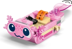 Set prinaša tudi mini prizor naravnega okolja z rastlinami, cvetlicami in prosojnimi modrimi kockami, ki ponazarjajo vodo – idealen dom za rožnatega in modrega aksolotla. Z aplikacijo LEGO Builder lahko otroci modele ogledujejo v 3D, vrtijo in približujejo, kar poenostavi sestavljanje in razvija digitalne veščine.
