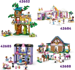 Obsežen trietažni klub za otroke od 8 let ponuja kreativno igro, 794 delčkov in veliko interaktivnih elementov – žičnico, tobogan, plezalno steno, slikarski kotiček, kuhinjo in skrb za hišne ljubljenčke. Vključuje 5 mini punčk, skriti računalnik, dron in dodatke za realistične zgodbe. Podpira skupno sestavljanje v aplikaciji LEGO Builder.