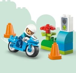Ta ljubek policijski motor LEGO DUPLO je idealen prvi set za otroke od 2 let naprej. Zahvaljujoč robustnim, barvitim delom in preprostemu sestavljanju bodo otroci uživali v številnih domišljijskih igrah s policistko na patrulji, prometnimi stožci in dodatki. Igra naravno razvija koordinacijo oko–roka, fino motoriko in komunikacijske veščine.