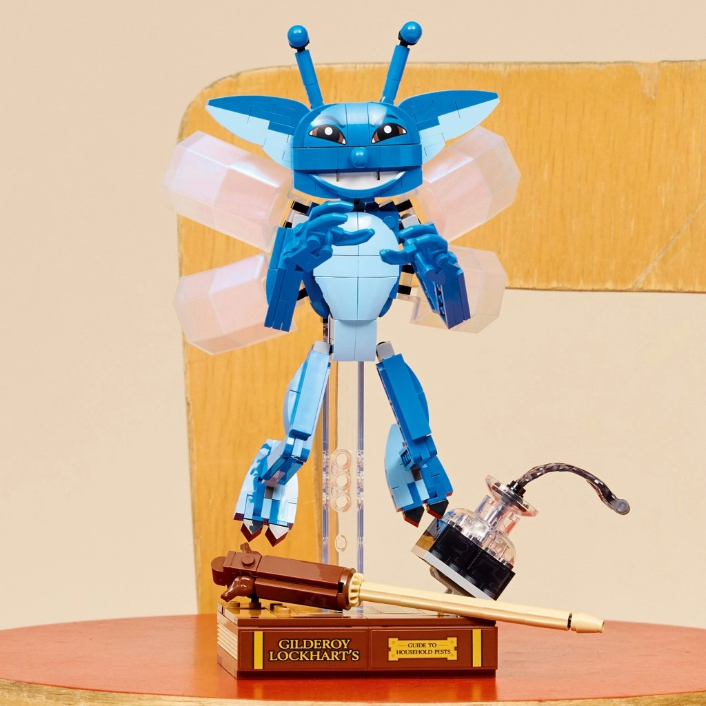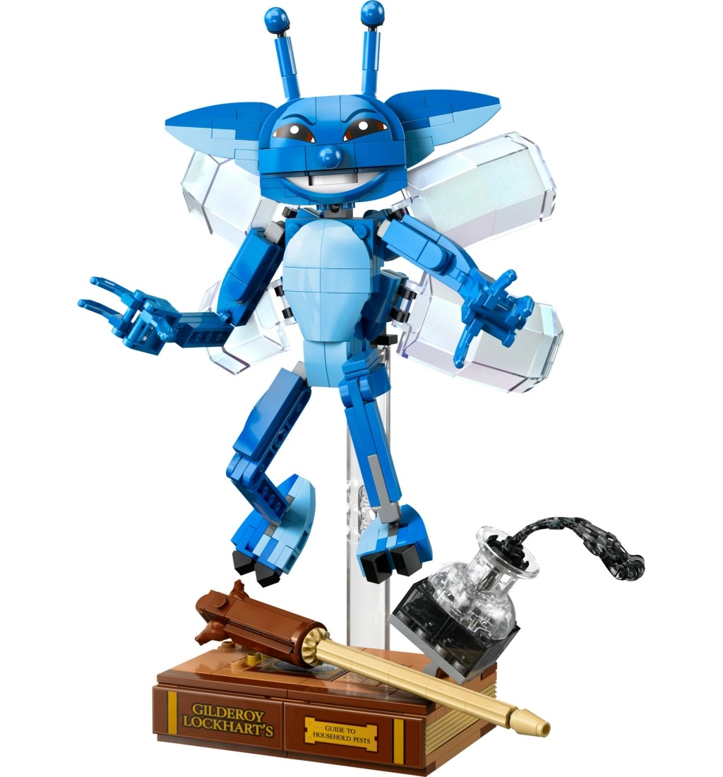 Del kompleta so impresivni dodatki – knjiga GILDEROYA LOCKHARTA s podrobnim hrbtom in zlatim napisom, prosojna steklenička s črnilom in zlata paličica. Model lahko razstavite na prosojnem podstavku ali ga postavite pokonci. Sestavljanje olajša aplikacija LEGO Builder z digitalnimi navodili, približevanjem in vrtenjem v 3D.