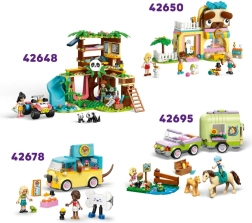 Odkrijte čarobni LEGO Friends hotel za zajčke v mestecu Heartlake, ki spodbuja prijazno skrb za živali in razvija otroško domišljijo. Barvit model z izrazito vijolično streho, rumenimi stenami in napisom »Hotel« z zajčjo glavico ponuja veliko igralnih scenarijev – od sprejemanja gostov do pospravljanja ležišč.