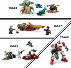Ta set, navdihnjen s prvo sezono serije STAR WARS: THE MANDALORIAN, zvesto prikazuje ikonični speeder z Tatooina. Ne manjka minifigurica Mandaloriana s srebrno čelado, plaščem in blastersko puško ter prisrčni Grogu v torbi ob motorju za pristne prizore in lastne pustolovščine.