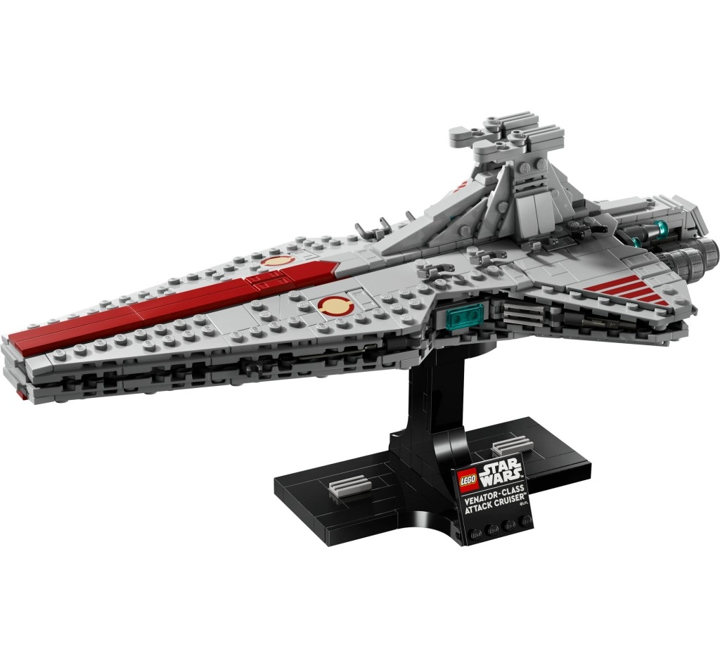 Ustvarite si košček galaksije doma s setom LEGO Star Wars napadalna križarka razreda Venator. Ta podroben zbirateljski model s sivimi in rdečimi poudarki verno povzema ikonično klinasto silhueto ladje iz STAR WARS: Maščevanje Sithov. Zahvaljujoč elegantnemu podstavku z napisno tablico odlično izstopa na polici ali delovni mizi ter razveseli odrasle oboževalce in zbiratelje z dovršenimi detajli, vključno z motorji, stolpi in antenami.