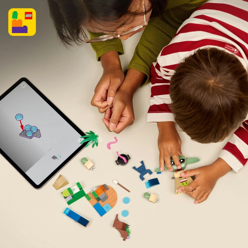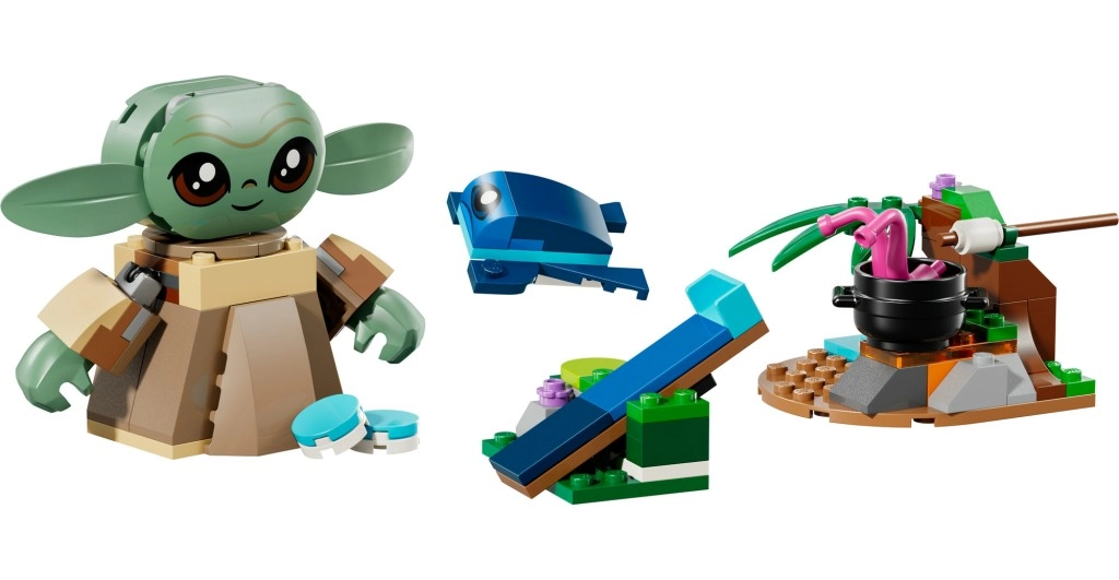 Del kompleta je majhno igralno okolje z ognjiščem in črnim loncem, penicami za peko nad ognjem, dvema modrima makronoma (eden se prilega v Gogujev trebušček), sorgansko žabo s katapultom in drobnimi dodatnimi modeli. Preprost slikovni priročnik in aplikacija LEGO Builder z orodji za približevanje in vrtenje modela pomagata otrokom razvijati fino motoriko in samozavest pri sestavljanju.