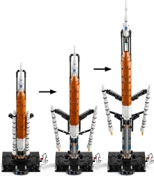 Komplet prinaša impresivno kombinacijo tehnične natančnosti in zabave. Model zvesto prikazuje stopničasto izstrelitev rakete SLS, vključno z ločevanjem stranskih pospeševalnikov na trdo gorivo, osrednje stopnje in zgornje stopnje z motornim modulom ter vesoljsko ladjo ORION. Celoten mehanizem poganja vrtenje ročice na stabilnem podstavku z informacijskim panojem in logotipi NASA, ESA in programa ARTEMIS.