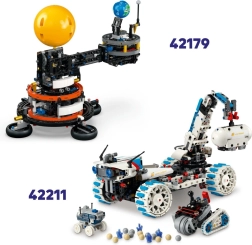 Realistična barvna zasnova v beli, oranžni in črni poudarja avtentičen videz. Na podstavku boste našli tudi štiri minifigurice astronavtov v belih skafandrih, ki modelu dodajo predstavitveno vrednost. Gradbeni komplet spodbuja logično razmišljanje, ustvarjalnost in tehnične veščine, hkrati pa je združljiv z aplikacijo LEGO Builder za preprosto digitalno vodenje skozi gradnjo.