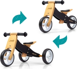Poganjalec 2v1 MILLY MALLY Jake Classic Black raste z otrokom: začne kot zanesljiv tricikel in ga v hipu spremenite v balansno kolo brez pedal z dvema kolesoma. Zahvaljujoč lahki in čvrsti leseni konstrukciji, udobnemu mehkemu sedežu s 3-stopenjsko nastavitvijo ter nedrsečim ročajem ponuja varno in zabavno vožnjo.