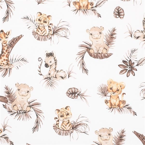 Mehka in udobna otroška rjuha New Baby Safari iz gladke bombažne tkanine zagotavlja miren spanec vašega malčka. Zahvaljujoč obrobni elastiki odlično drži na vzmetnici, ne draži občutljive kože in je primerna za vzmetnice 120 × 60 cm. Certifikat OEKO-TEX STANDARD 100 zagotavlja varnost materialov.